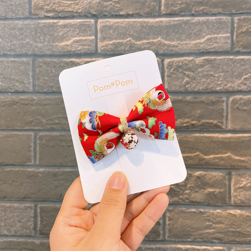 1 x Handmade Kimono Fabric Hair Clips with bell ball
