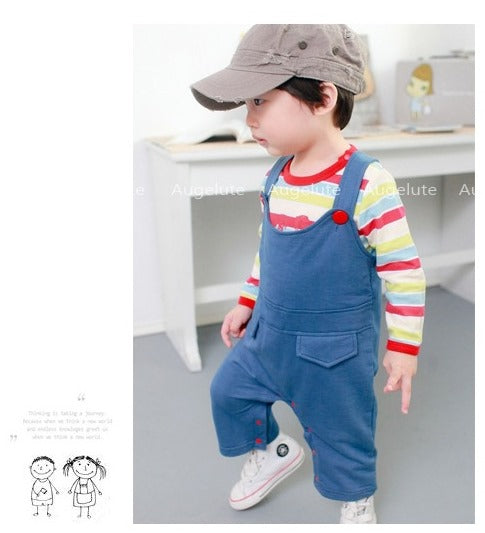 This stylish dungaree set from JaJambo is perfect for any little one, including a long sleeved striped romper and cotton soft dungarees. The long cotton romper is a style classic, with long sleeves and side neck opening while the dungarees are made from soft cotton. The dungarees fasten at both sides for easy fitting and changing. Made from 100% quality cotton, this outfit is beautifully soft on the skin with two cute pockets at the front, adjustable straps and popper openings along the crotch for easy dressing.