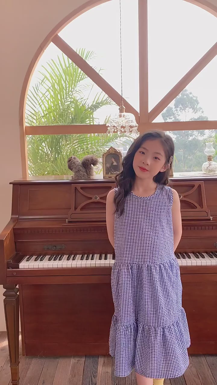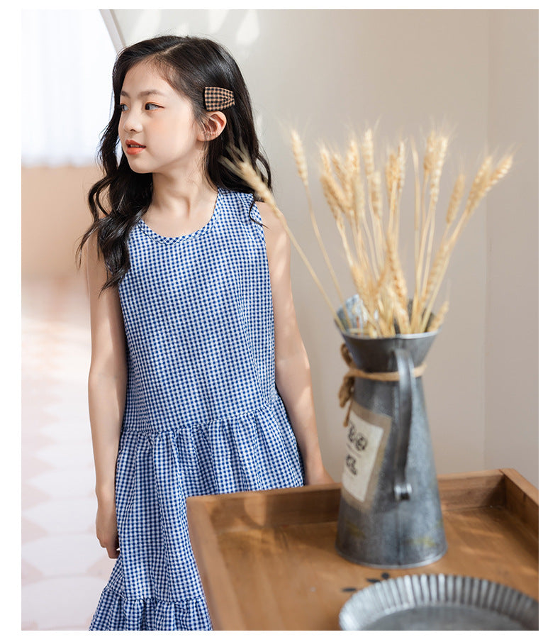 Checked Cotton Pinafore Dress - Blue