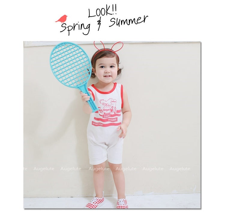 Bodysuits are an essential piece of clothing for new babies, and these white sleeveless designs are perfect for the warmer months. This cute little romper suit has a cheerful cartoon design. Made from 100% cotton for comfort and flexibility, the romper also boasts poppers at the crotch for easy dressing and changing.