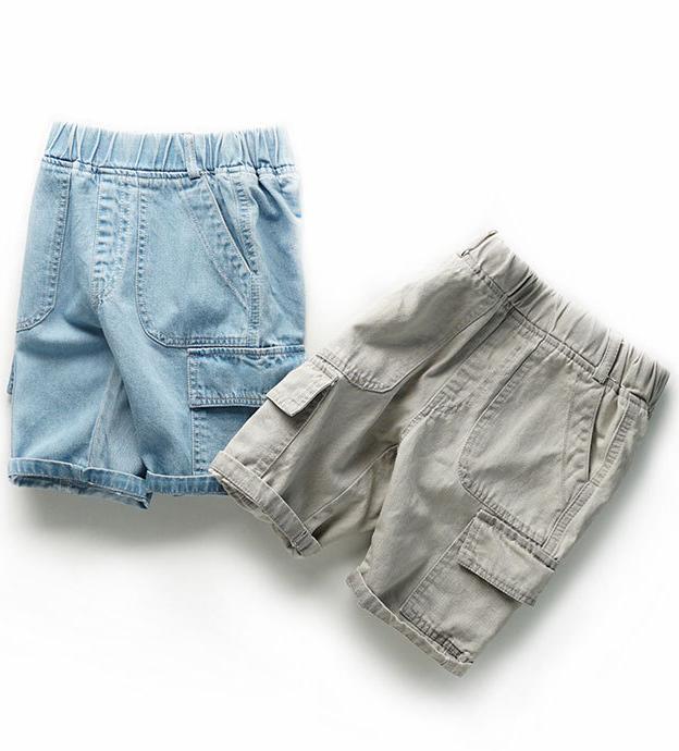 Cotton Denim Cargo Jeans Short - Blue