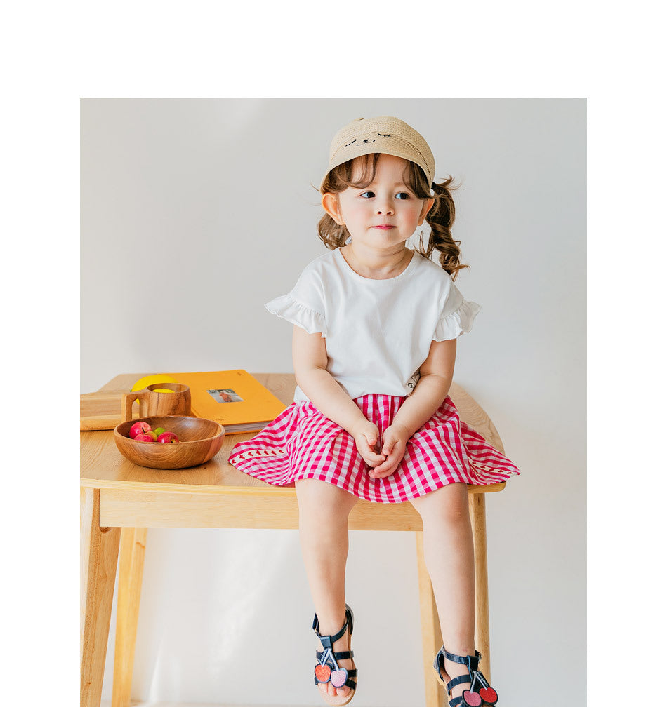 Cotton skort for girls from the designers in Korea, made and lined in gentle-on-the-skin cotton jersey. Sporty and stylish, the pleated skirt is designed with red and white check, elasticated waist, and an attached shorts lining.