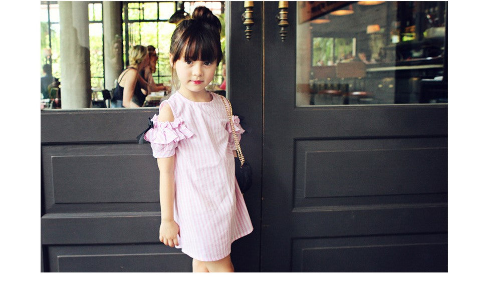 Girl Cotton Stripe Dress- Pink