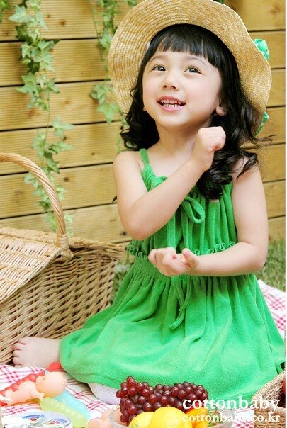 A cheerful green dress from Cotton Baby in the brightest of hues. Perfect for sunny days out or by the beach, this bright strap dress features a ribbon on the front, a gathered ruffle to the hem and the softest cotton-blend towel fabric.