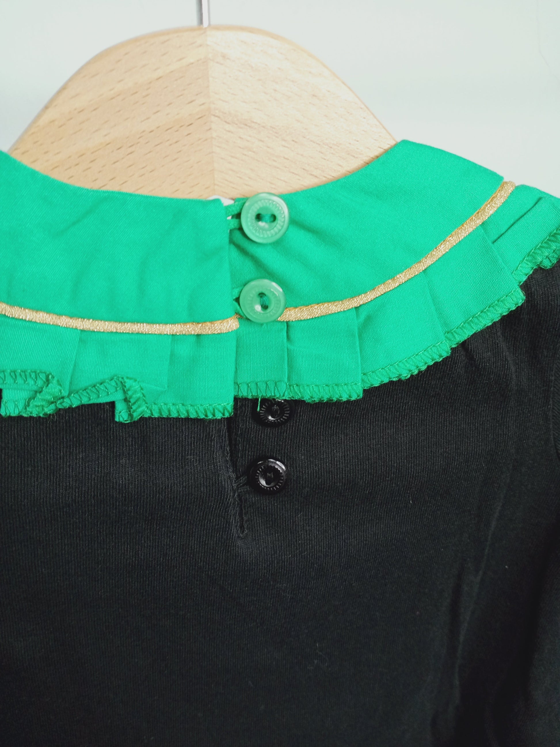 Girl Black Top Long Sleeve - Blue Collar with Jade Button (Made in Korea)