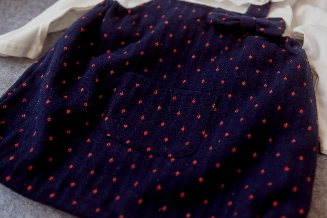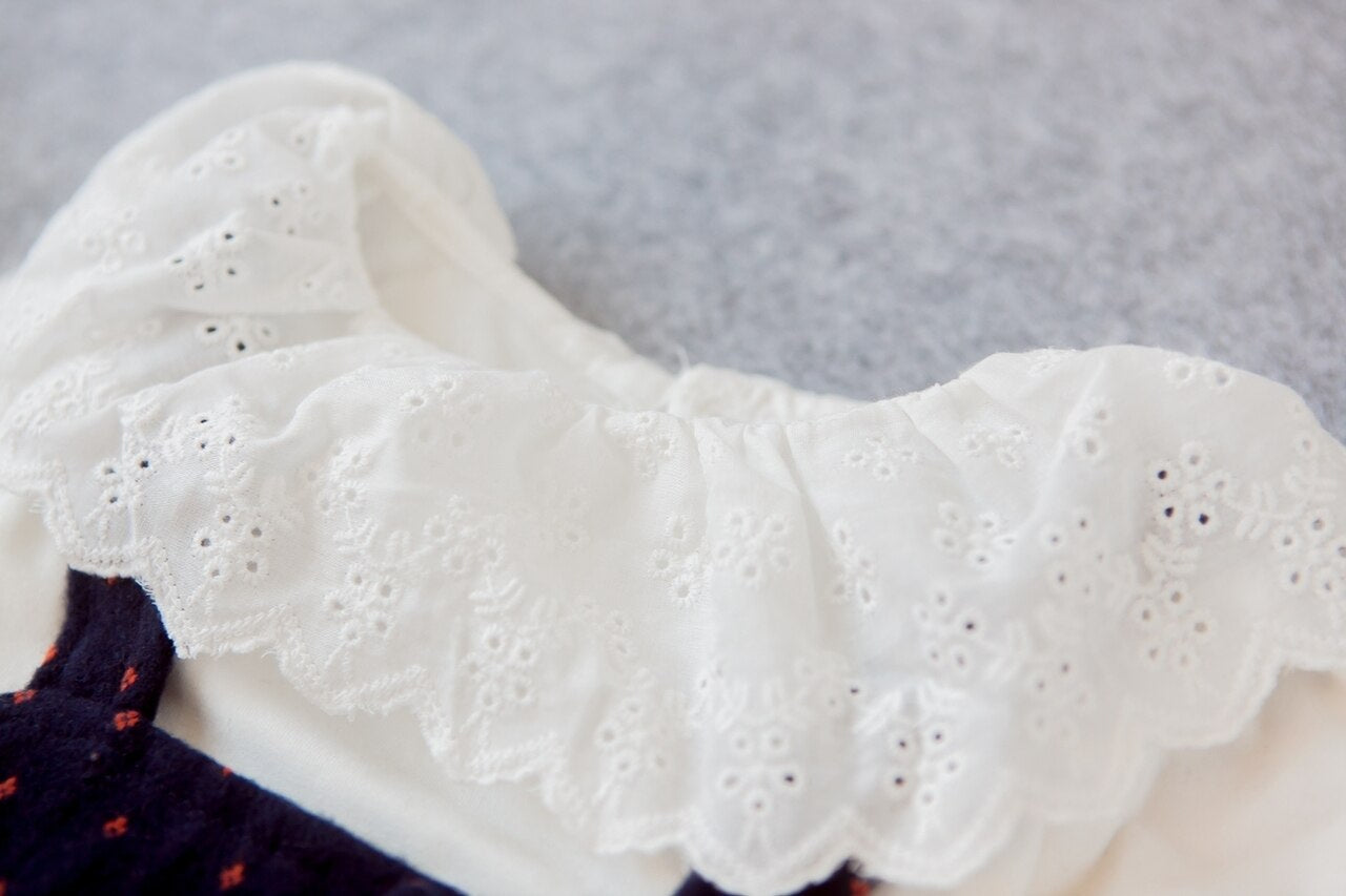 Girls Floral Pattern Navy Pinafore Dress Set ( Thick Material)
