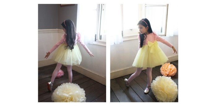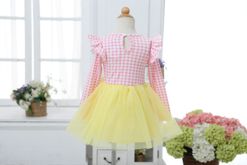 Girls Pink Check and Yellow Tulle Tutu Dress