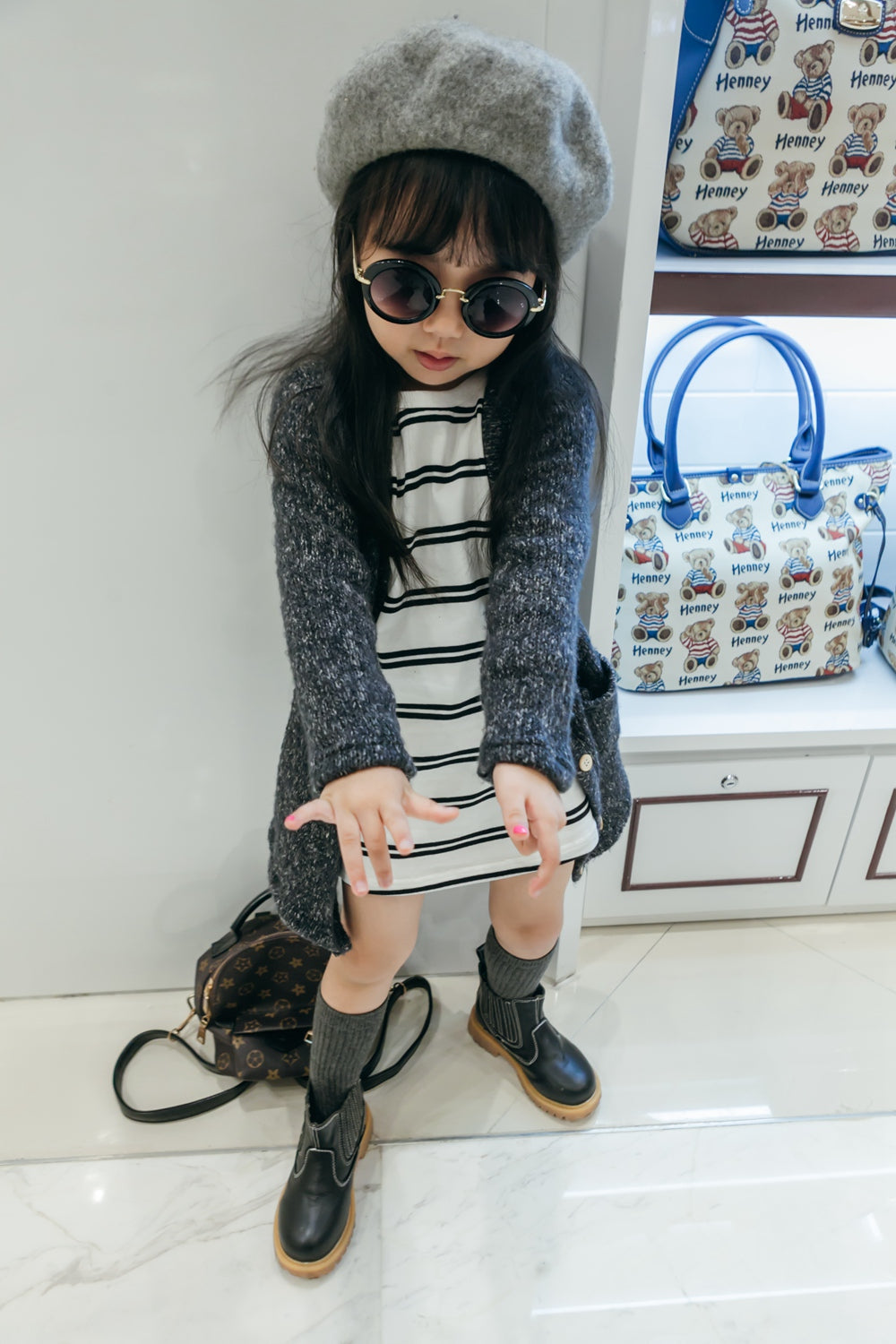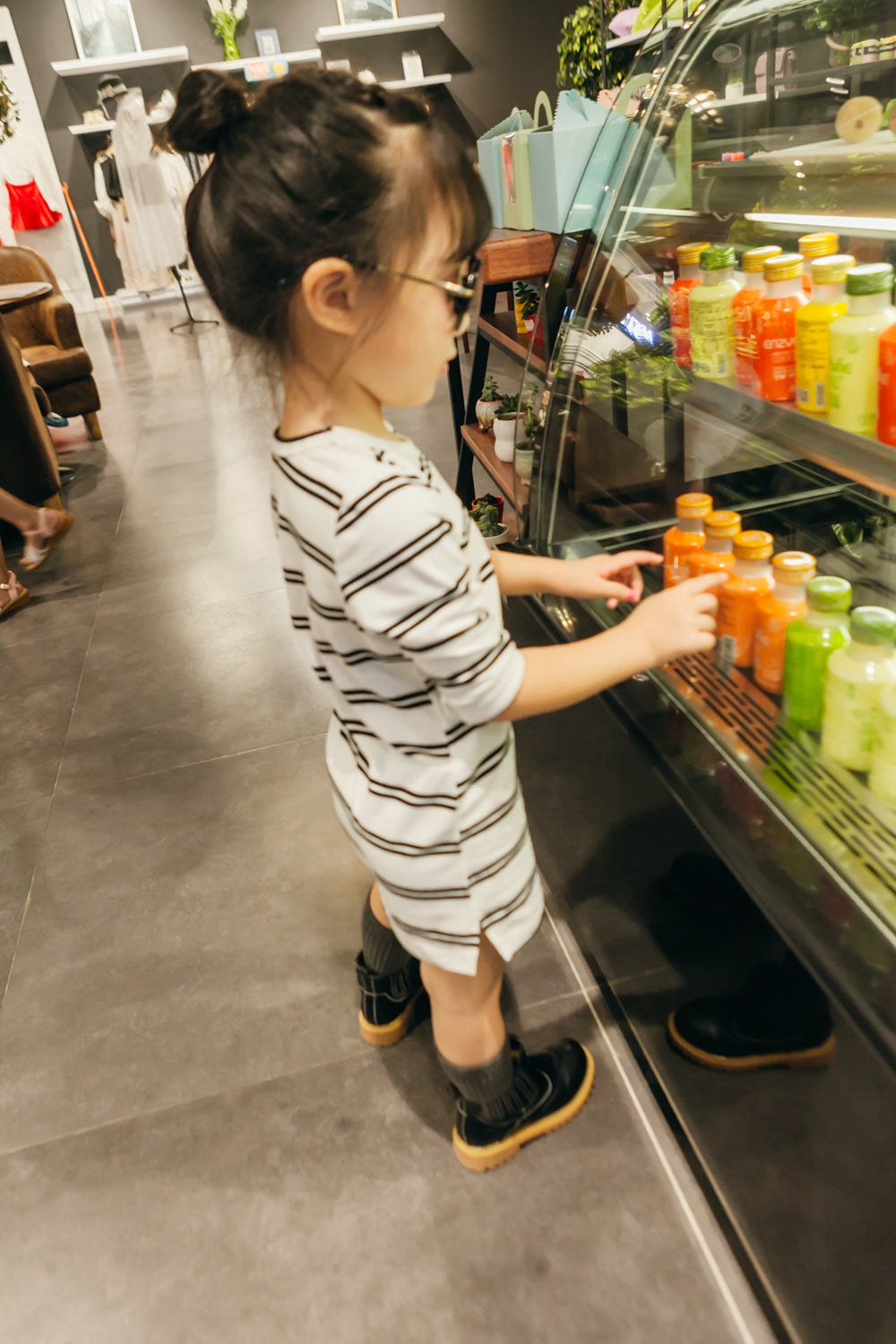 Girls Black striped white dress by Bobo, made in comfortable cotton jersey.