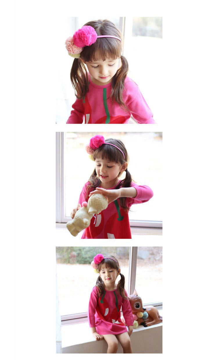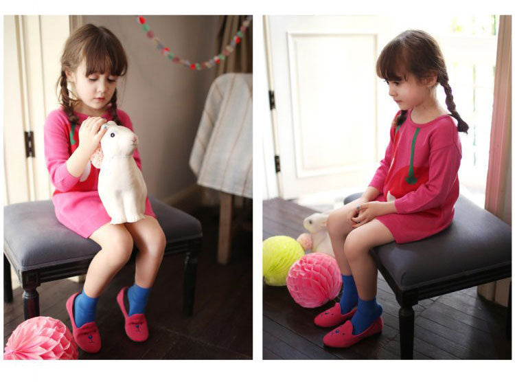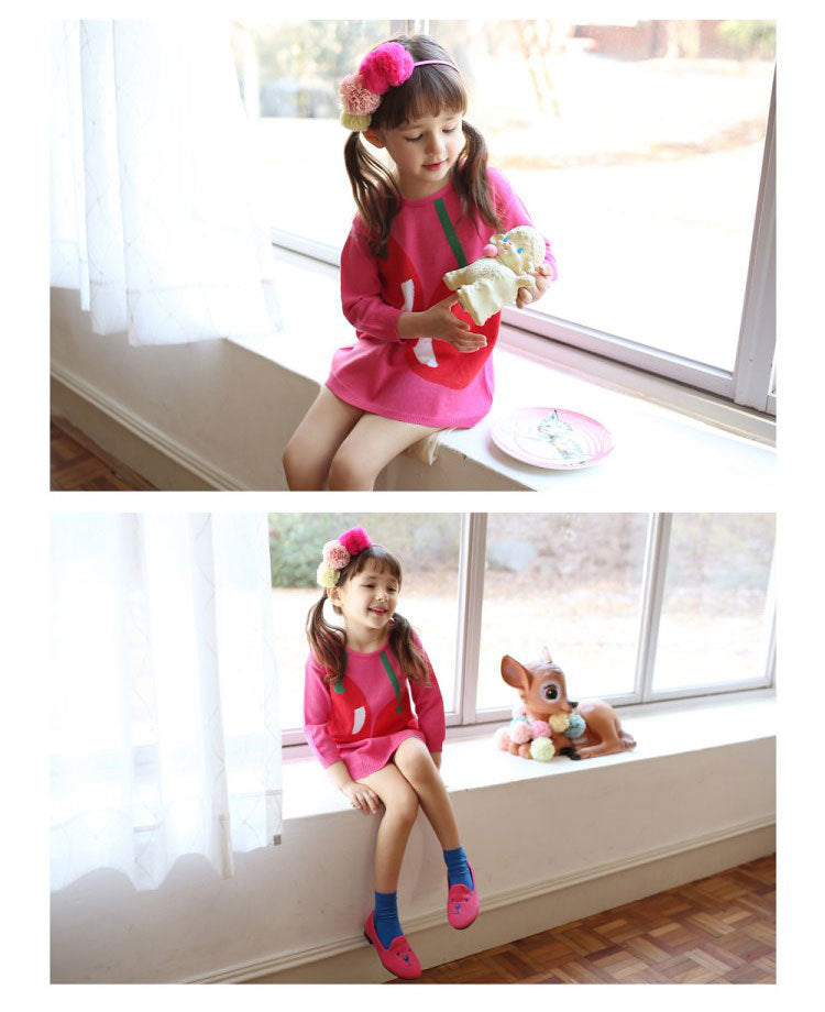 Girls pink sweater dress by Amber, with cute cherries design on the front. Soft, warm and comfortable.